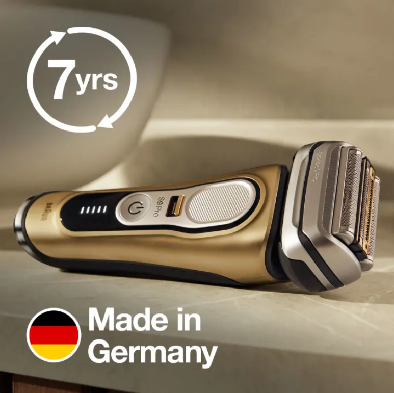 + Sản xuất tại Đức: Máy cạo râu điện này cũng không thấm nước 100% và có thể được sử dụng với bọt, gel hoặc thậm chí dưới vòi hoa sen.