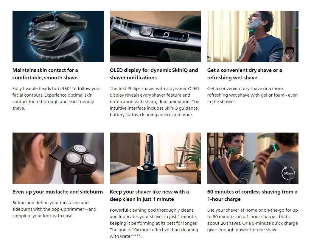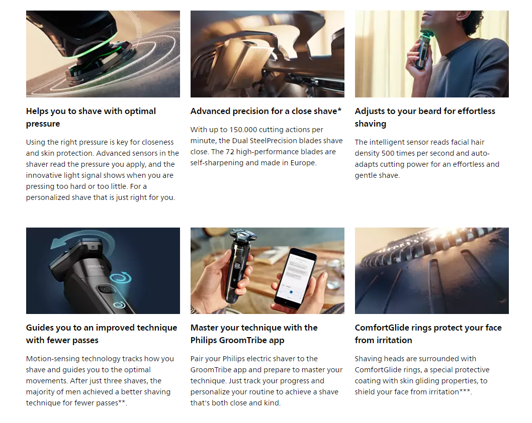 * Được hỗ trợ bởi AI, Philips Shaver Series 9000 mới mang lại sự thoải mái cho làn da được cá nhân hóa và độ gần gũi vượt trội ngay cả khi để râu sau năm ngày.